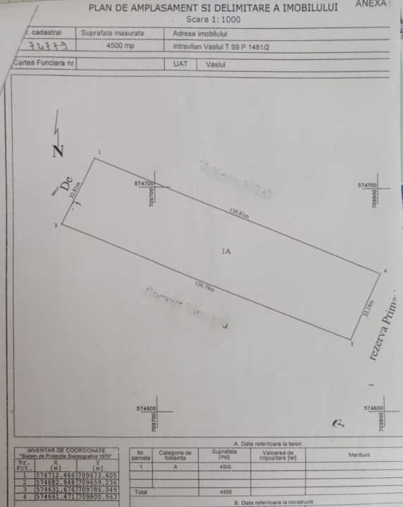 Oportunitate excelentă de investiție! Se oferă spre vânzare teren situat într-o zonă foarte bine poziționată, în apropiere de Kaufland Vaslui, cu acces direct din strada Decebal.